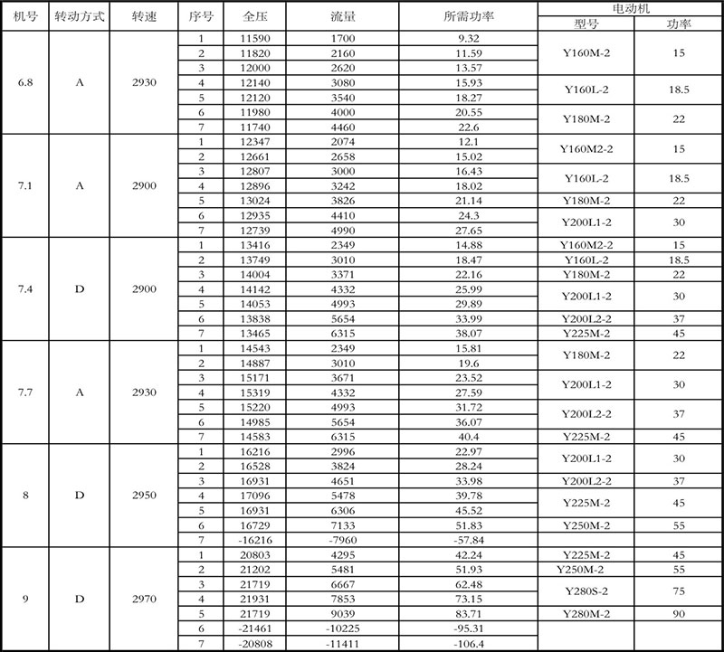 8-09高壓離心通風(fēng)機(jī)性能參數(shù)表