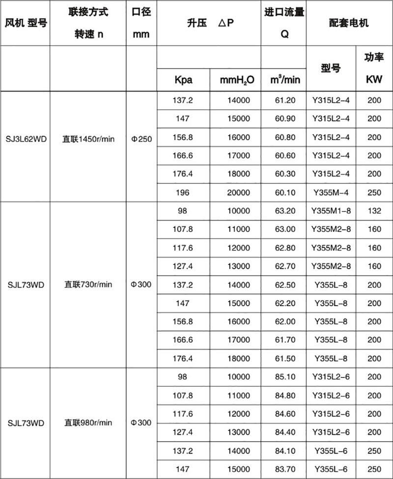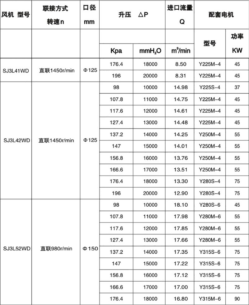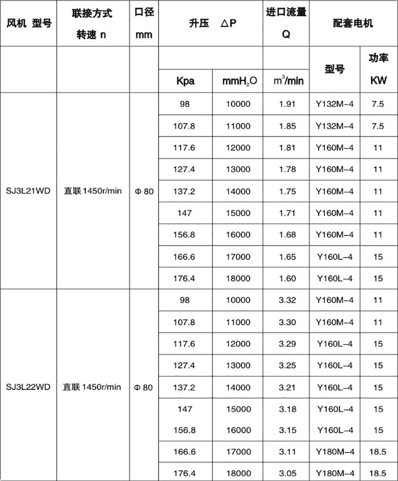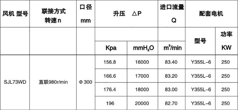 雙級(jí)高壓羅茨風(fēng)機(jī)性能表
